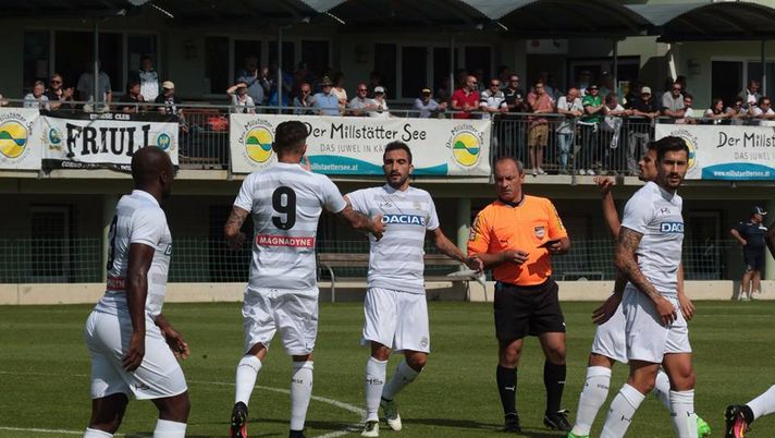 Gara all'insegna del grande caldo: il primo tempo è spezzato in due tronconi dal timeout concordato insieme all'arbitro Zufferli. Nella prima parte non ci sono occasioni significative, mentre nella seconda metà arrivano ben tre segnature. Alla mezz'ora il vantaggio è bianconero con Zapata che sfrutta al meglio un assist di Thereau e infila all'angolino l'incolpevole Brljak. Sul finire di tempo la botta e risposta con il pareggio ospite firmato Eleke, bravo a sfruttare un mancato fuorigioco orchestrato dalla retroguardia dell'Udinese, e il nuovo vantaggio friulano su rigore conquistato da De Paul e trasformato da Thereau.