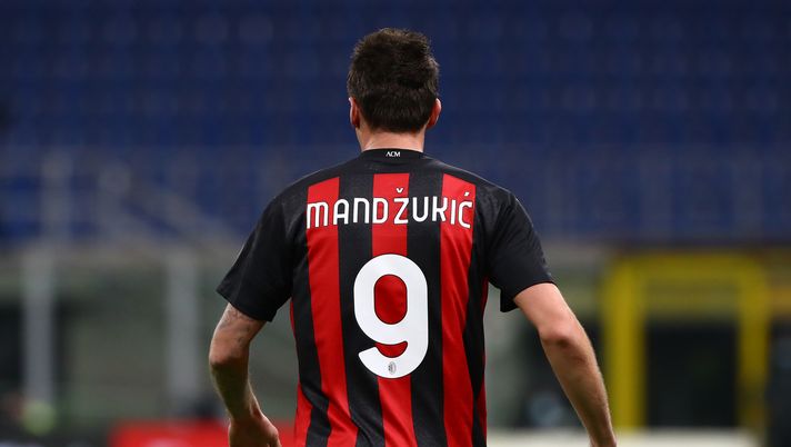 MILAN, ITALY - JANUARY 23: Mario Mandzukic of Milan in action during the Serie A match between AC Milan and Atalanta BC at Stadio Giuseppe Meazza on January 23, 2021 in Milan, Italy. Sporting stadiums around Italy remain under strict restrictions due to the Coronavirus Pandemic as Government social distancing laws prohibit fans inside venues resulting in games being played behind closed doors. (Photo by Marco Luzzani/Getty Images)