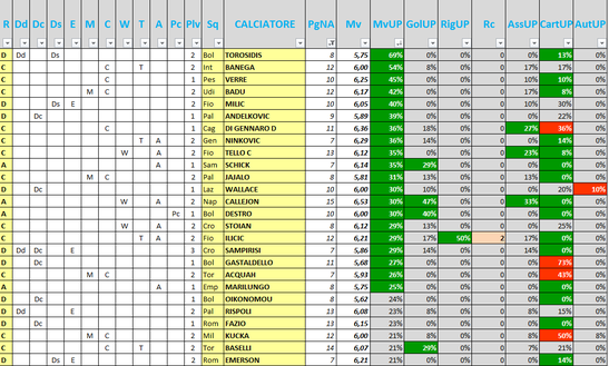 NB: si prendono in considerazione i soli calciatori che abbiano raccolto almeno 7 presenze su 15